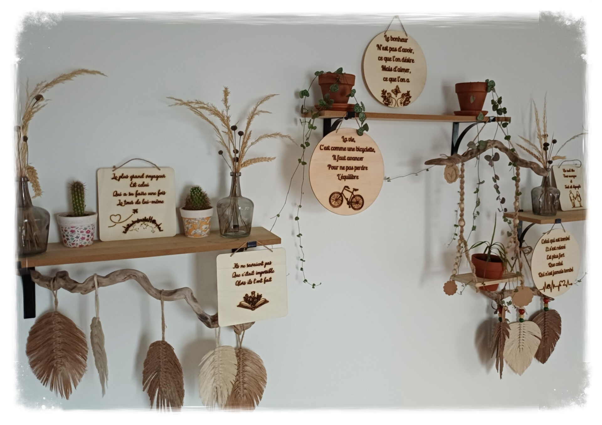 ✨️Chaque pièce est soigneusement gravée au laser, révélant une citation inspirante et un dessin élégant pour une décoration unique, pleine de sens et de chaleur.